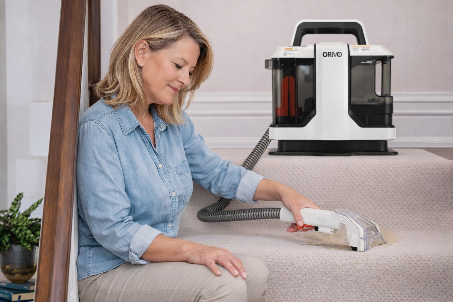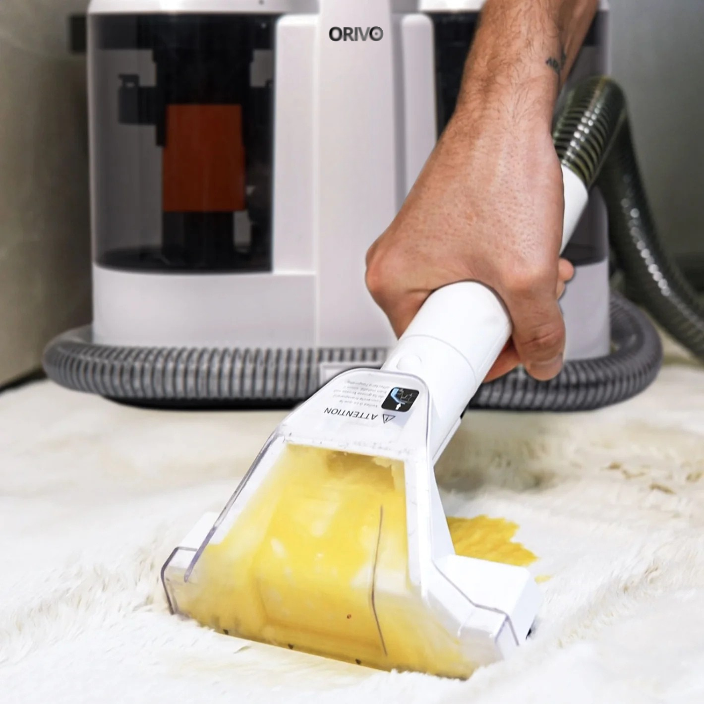 La shampouineuse Orivo est équipée d’un moteur puissant de 850 watts et d’une aspiration ≥18 KPA, capable de nettoyer efficacement la poussière, les taches et les petites particules sur les tapis et les surfaces textiles.